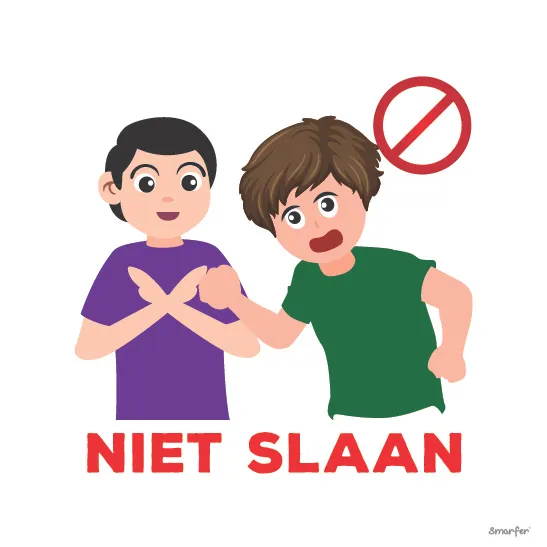 Het pictogram “Niet slaan” helpt kinderen te herinneren aan het belang van vreedzaam gedrag en geweldloosheid.