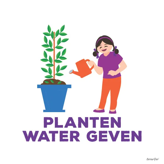 Het “Planten Water Geven” pictogram moedigt verantwoordelijkheid en zorg voor het leven om ons heen aan. Dit pictogram helpt kinderen te herinneren aan het belang van regelmatig zorgen voor hun planten.